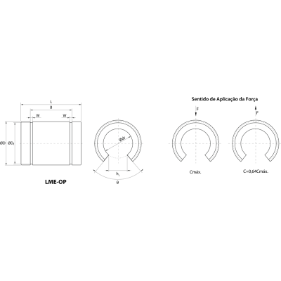 LME 30 UU OP | 47 | 68 | 30 | 12,5 | 50º | 1.560 | 2.740 |